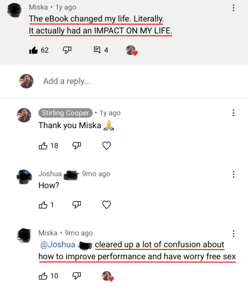 ✅ Struggling with confidence in the bedroom and feeling anxious before intimacy? ✅ Worried about finishing too soon and not satisfying your partner? ✅ Feeling pressure to perform and constantly overthinking in intimate moments? ✅ Unsure how to naturally increase your size without surgery or expensive treatments? ✅ Making common mistakes in the bedroom that are turning your partner off? ✅ Not sure how to build attraction and escalate things on a first date? ✅ Seeing other men succeed effortlessly and wondering what you’re doing wrong? ✅ Confused about what women actually desire and how to give them the best experience? ✅ Feeling stuck in the same cycle of frustration, rejection, and self-doubt?